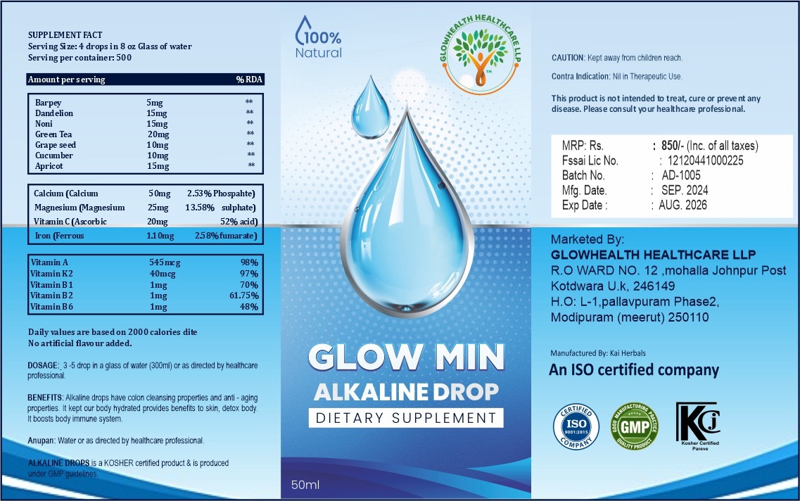 GLOW MIN AN ALKALINE DROP FOR DIATERY SUPPLEMENT.
